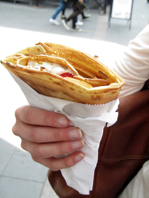Fannysta suuntasimme herkuttelemaan Crêperiehen, josta olen kymmeniä kertoja kulkenut ohi ja ajatellut että pitäisi maistaa, mutta en ole koskaan aiemmin saanut aikaiseksi.