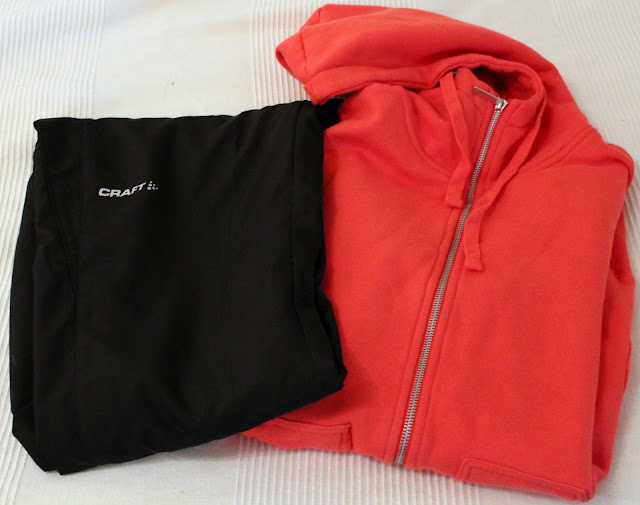 Sopivien urheiluvaatteiden etsintä osoittautui yllättävän hankalaksi ja olinkin suorittanut etsintää jo aiemminkin. Halusin nimenomaan yhdet tavalliset, keveää materiaalia olevat, mutta kuitenkin verkkovuorilla varustetut tuulihousut ja paksun, harjatulla vuorilla varustetun college-takin- mutta en halunnut kummastakaan maksaa kovin suuria summia. Craftin tuulihousut löytyivät Intersportista ja Warpin pitkä college-takki Stadiumista. Näitä haluamani tyyppisiä vaatteita löytyi lähinnä miestenosastolta, kun taas naisille oli tarjolla vain joko Gore Tex-housuja tai juoksutrikoita sekä ohutta trikoota/collegea olevia takkeja. Onneksi kuitenkin löysin kuin löysinkin lopulta etsimäni :)