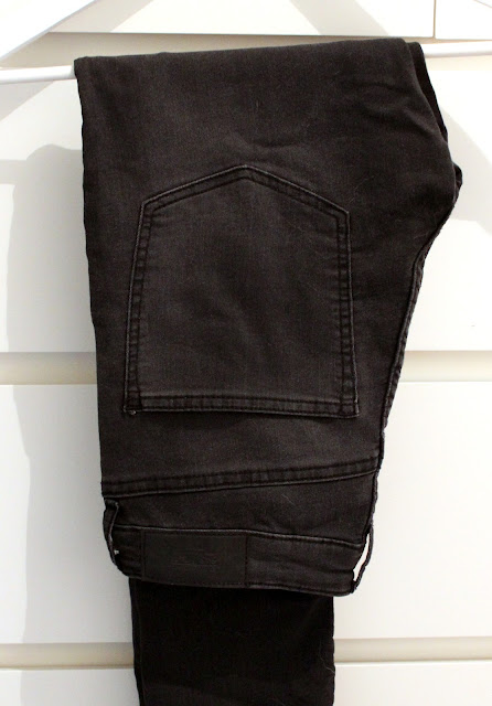 Harmaiden farkkujen sijaan päädyinkin ostaaman mustat farkut H&M:ltä (tosin tämä musta kulunee aika nopeasti mukavan haaleaksi). Tavoitteeni on korvata kaikki farkkulegginsini oikeilla farkuilla mahdollisimman pian, koska legginsit rajoittavat todella paljon niiden kanssa puettavan paidan mittaa: tarpeeksi pitkät paidat eivät omaan silmääni enää oikein näytä kivoilta, joten leggarien käyttö alkaa olla melko rajoitettua. Nämä farkut tosin ovat malliltaan vielä aivan pillit, mutta aion pitää silmäni auki myös hiukan leveämpien (=pillien sijasta kapeat) lahkeiden sekä vaaleampien harmaiden ja/tai mahdollisesti muissa blogeissa ihastelemieni viininpunaisten farkkujen varalta. Näillä pääsen kuitenkin alkuun rokimpien asukokonaisuuksien luomisessa :)