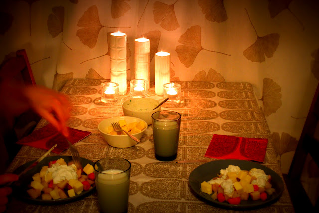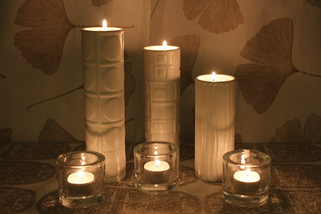Illalla sytytin kynttilät tunnelmaa luomaan...