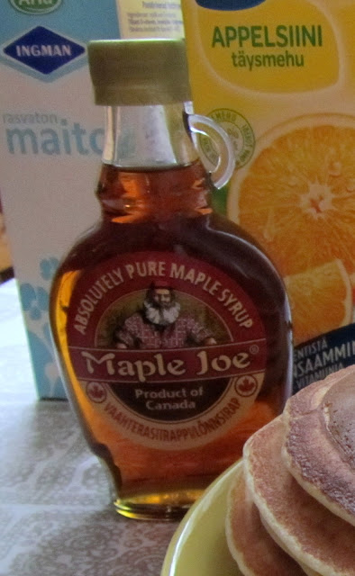 Maple Joe on muuten ainoa oikea vaahterasiirappi! Kaupoissa on muitakin vaihtoehtoja, esimerkiksi Aunt Jemima's (tmv), joka on huomattavasti halvempi kuin Maple Joe. Maku ei kuitenkaan ole lähelläkään tätä herkkua. Tässä ei siis kannata pihistää, trust me :)