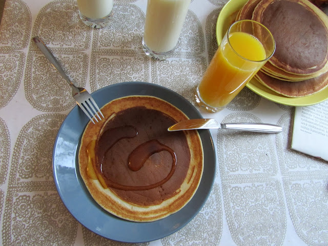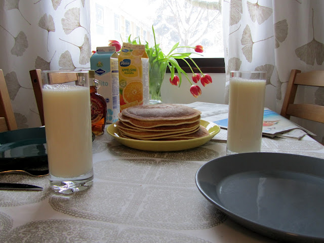 Tämä päivä alkoi ihanasti: nimittäin mieheni paistamien lettujen voimin.