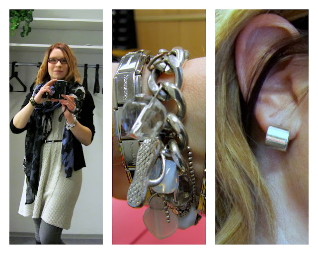 Maanantaina yhdistin neulemekon ja paitapuseron. Asusteina: Vyö/Pieces, Sukkahousut/Wolford, Rannekorut/Nomination ja Ideakoru, Korvakorut/barcelonalainen Joid'art, Saappaat/Vagabond.