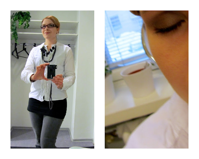Keskiviikkona lähdin suoraan töistä katsomaan erästä esitystä. Tapahtuma oli erittäin epämuodollinen ja olisin aivan hyvin voinut lähteä myös täysin samoissa asusteissa kuin vietin päivänikin, mutta mieleni teki hiukan muokata asuani.