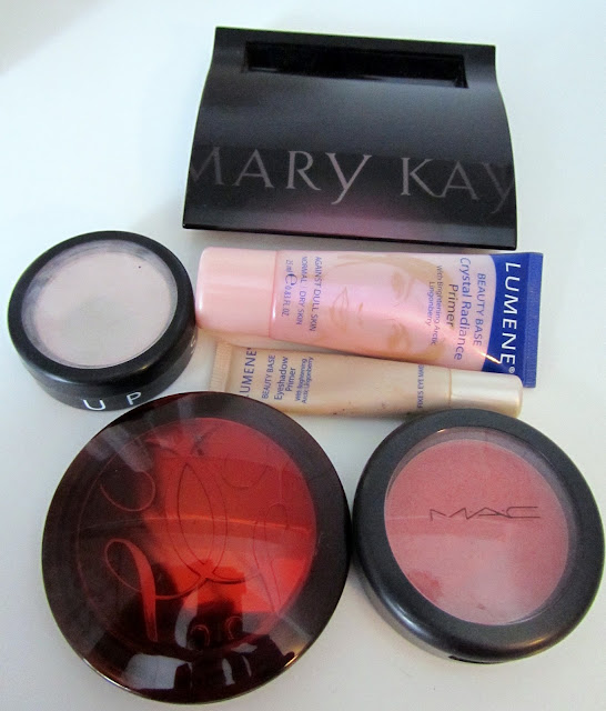 Mary Kayn luomivärit, Make Up Storen Ranch- luomiväri, sekä Lumenen Bauty Base Crystal Radiance Primer ja Beauty Base Eyeshadow Primer.
