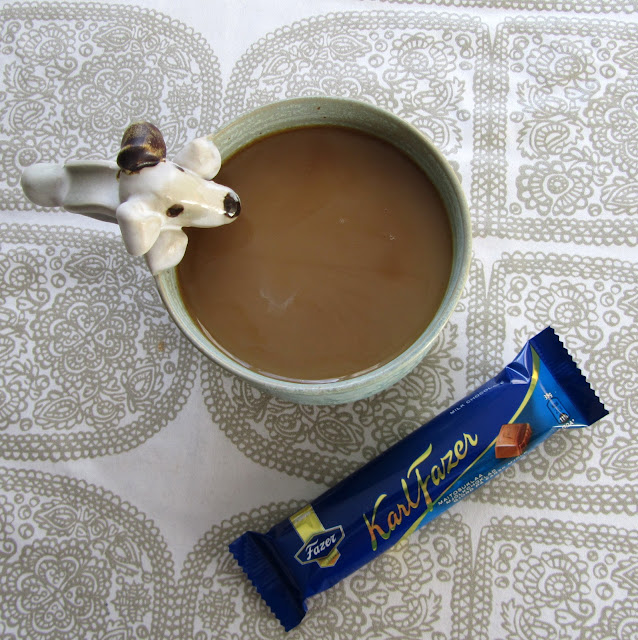 Pohjustin tätä aamua eilen kaupassa toisellakin tavalla: ostin aamukahvini seuraksi vähän suklaata. Mmmmm.