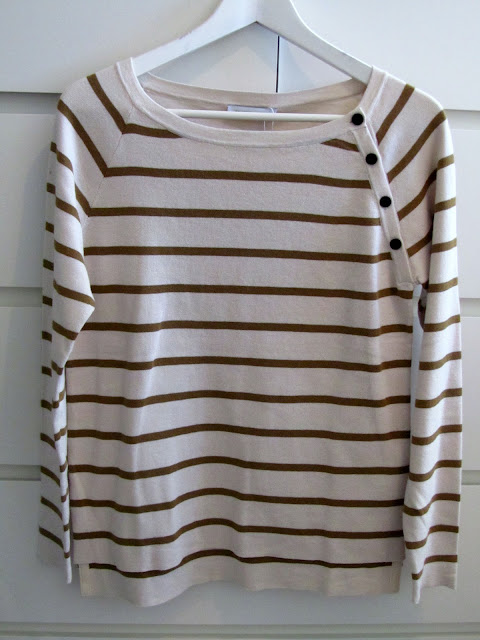 Tämä seilorihenkinen raitaneulekin löytyi Selectedistä (ja oli maanantain kollaasissa, tosin kollaasin siniraitaista versiota en nähnyt liikkeessä). Tykkään tässä erityisesti siitä, että takaosa on hiukan pidempi kuin etuosa - jälleen pieni juju, joka tekee siitä hiukan erilaisen kuin kaikki muut raitaneuleet. (Selectedillä on paljon tällaisia vaatteita, siksi tykkään liikkeestä niin paljon.)