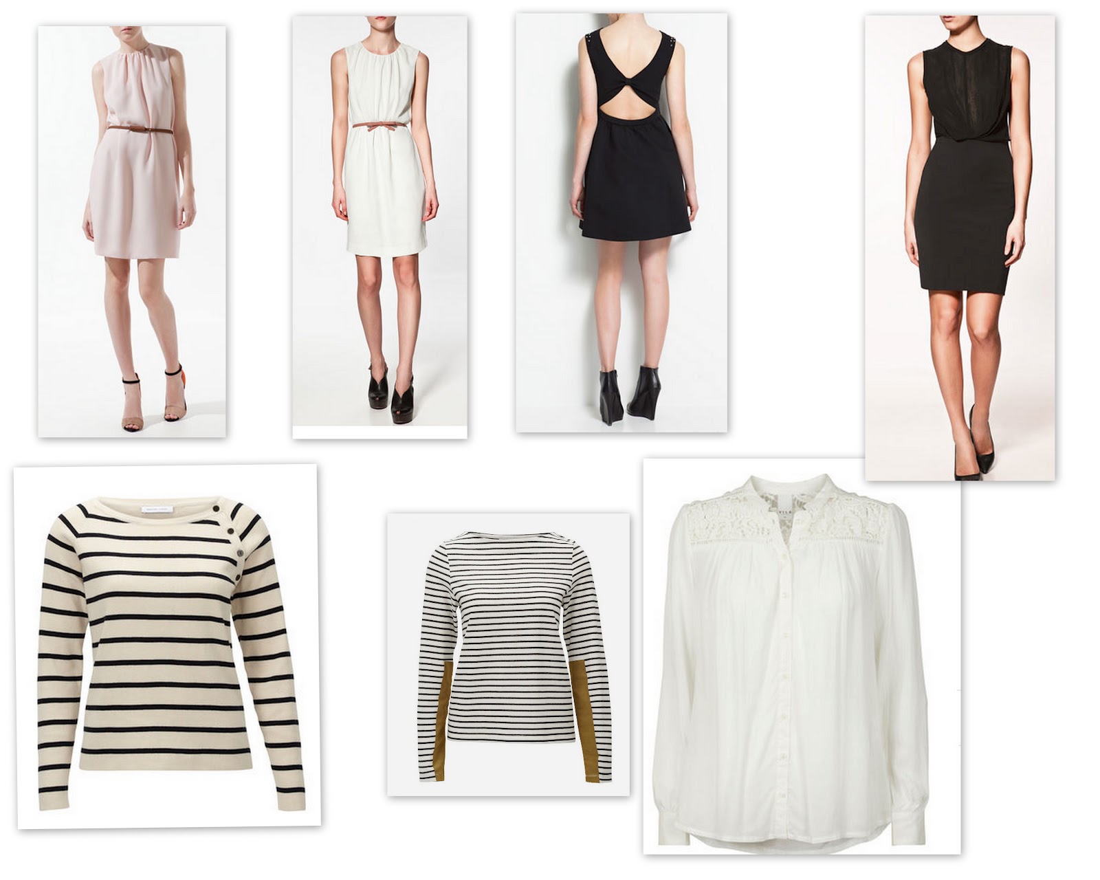 Etenkin yläosat menivät siivouksessa vaihtoon, joten ostoslistalla on ainakin joku simppeli yläosa (tai kaksi) nudesssa/pastellivärissä- muutama mustakin eksyi jälleen kollaasiin, mutta yritän kuitenkin pysytellä erossa niistä.