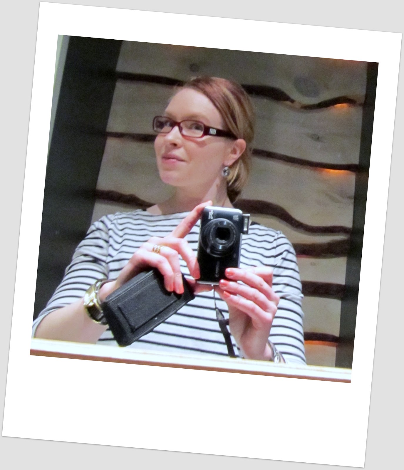Lauantain asusta en tullut ottaneeksi kunnon kuvaa, ainoastaan tällaisen pikaotoksen lounaspaikan (josta lisää huomenna!) vessassa. Kuvassa vilahtavat myös laivalta ostamani uudet korvikset (niistäkin parempi kuva tulossa myöhemmin).