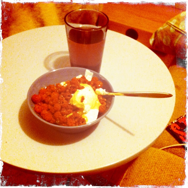 Turkkilaista jugurttia, vadelmia ja hunajaa. Mmmmmm, niiiin hyvää. Että joku muukin halusi maistaa.