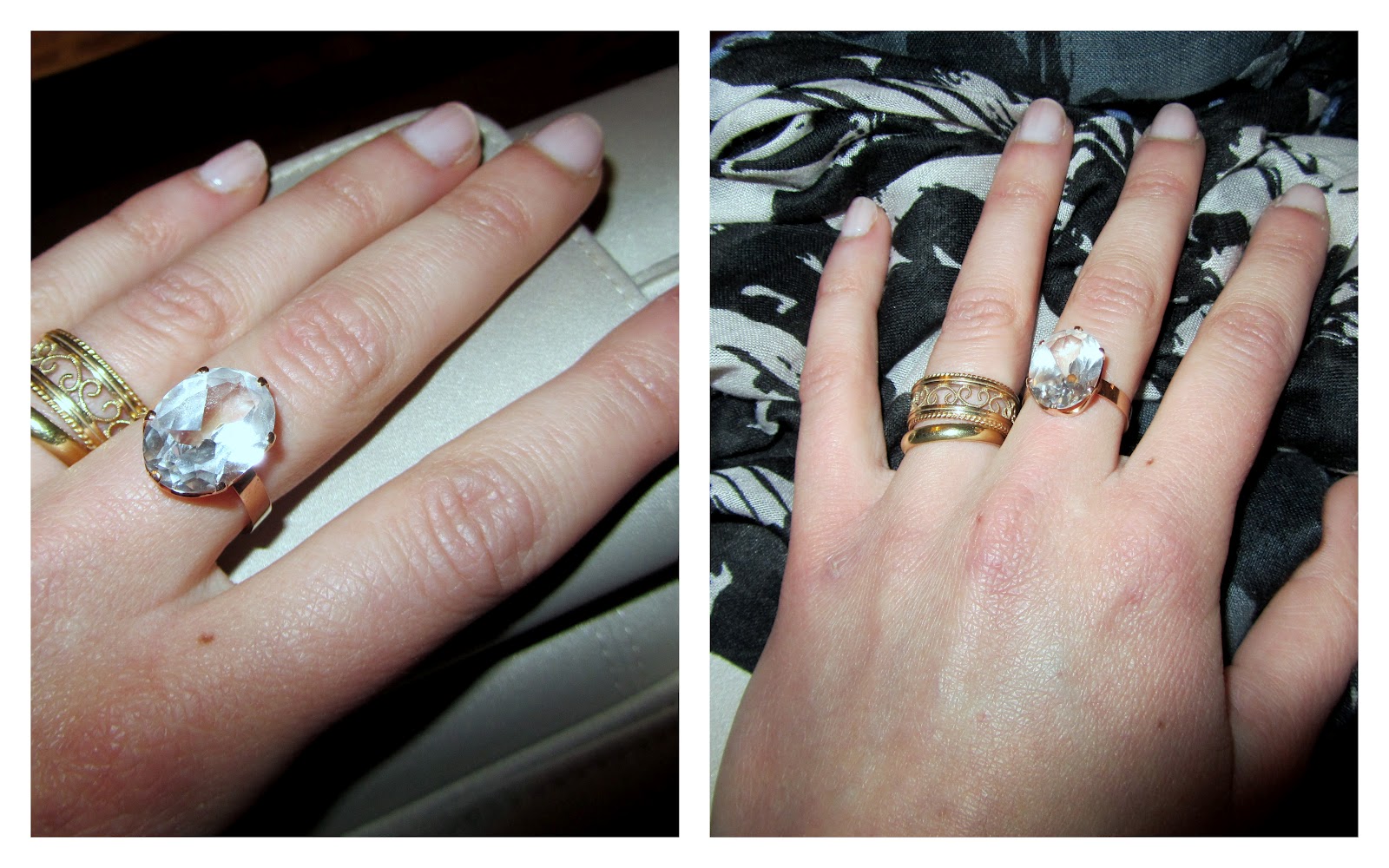 Yksityskohtia: sormeeni päätyi äidiltä saamani vintage-sormus. Piecesin huivi lämmitti loppuillan viileydessä.