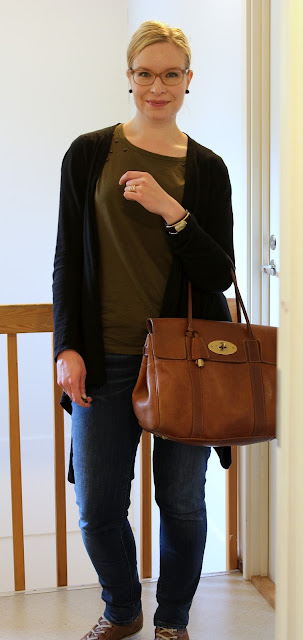 neule/Esprit, T-paita/Zara, farkut/Levi's, tossut/Converse, laukku/Mulberry, korvikset/H&M